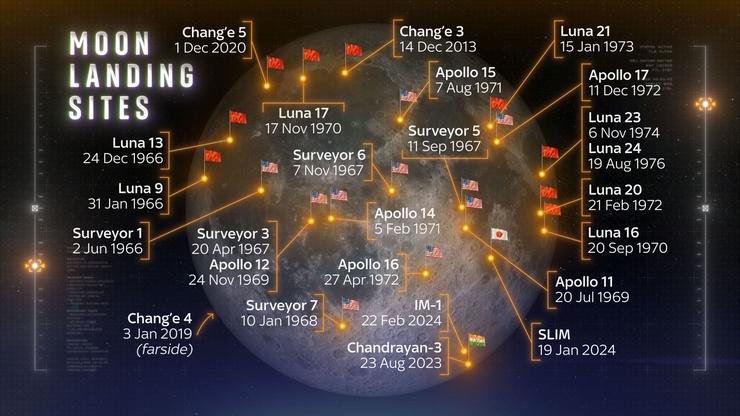 Svemirskim misijama na Mjesec dugo su dominirali SAD i SSSR. U frenetičnom desetljeću između 1966. i 1976. godine, sovjetski program Interkosmos izveo je osam slijetanja sa svojim letjelicama Luna. S druge strane, NASA je spustila pet sondi Surveyor i šest letjelica Apollo s ljudskom posadom.