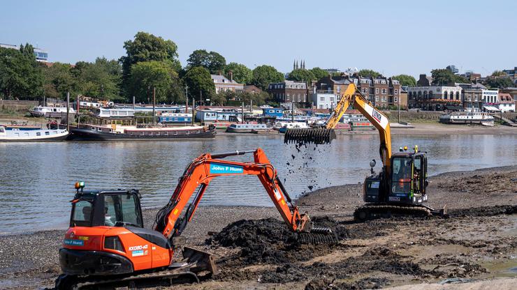 Upravo se to sada događa – u ime Uprave londonske luke, uprave za luke i plovne putove britanske prijestolnice. Od sredine kolovoza jaružalo svakodnevno radi na ovom dijelu obale. Kad god plima dopusti, polako se probija prema dijelu između obale i korita rijeke, a zatim spušta svoju rešetkastu kantu u meku, crnu masu.