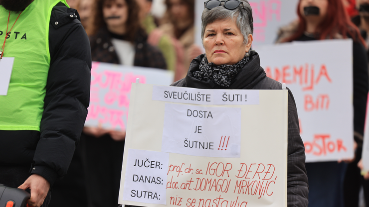 Više od stotinu studenata i studentica Akademije za umjetnost i kulturu osječkog sveučilišta održali su nedavno prosvjed pod nazivom "Dosta je šutnje" zbog vraćanja glumca i njihova profesora Domagoja Mrkonjića na fakultet nakon što su ga prijavili za nasilno i neprimjereno ponašanje prema njima.
