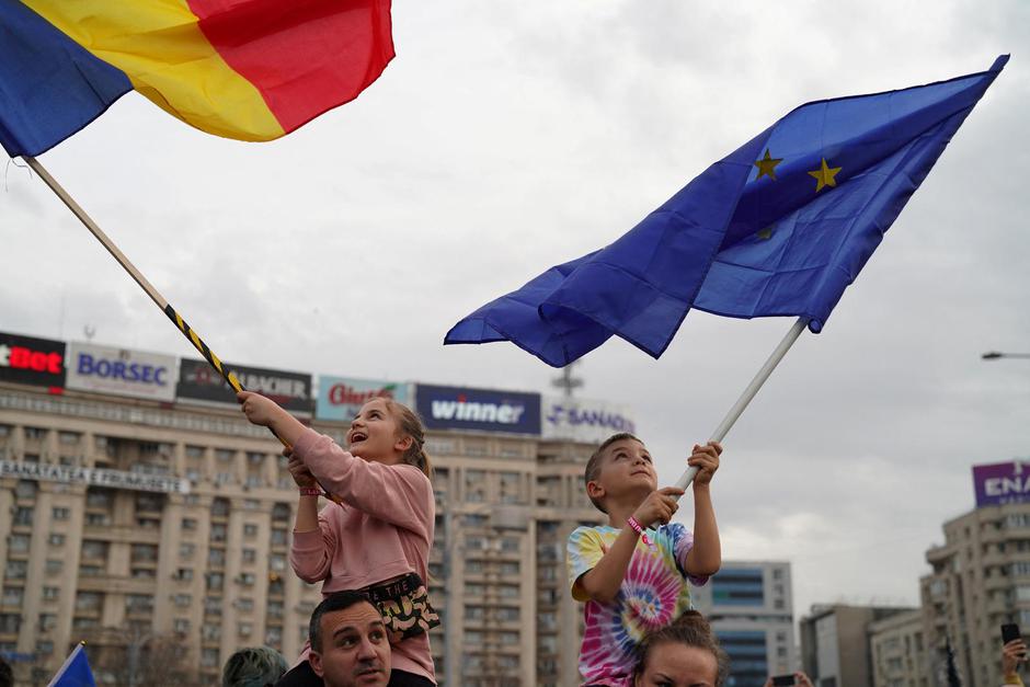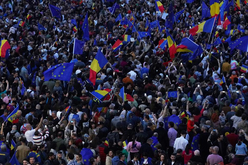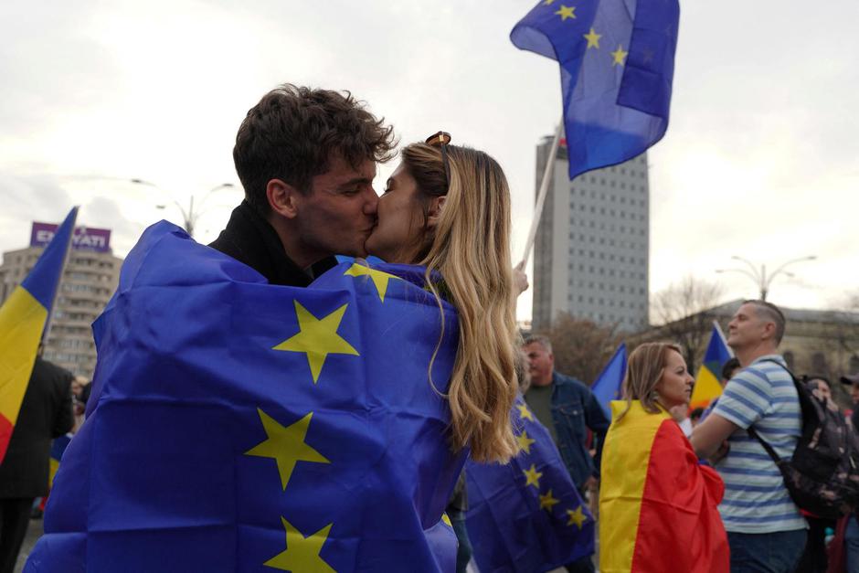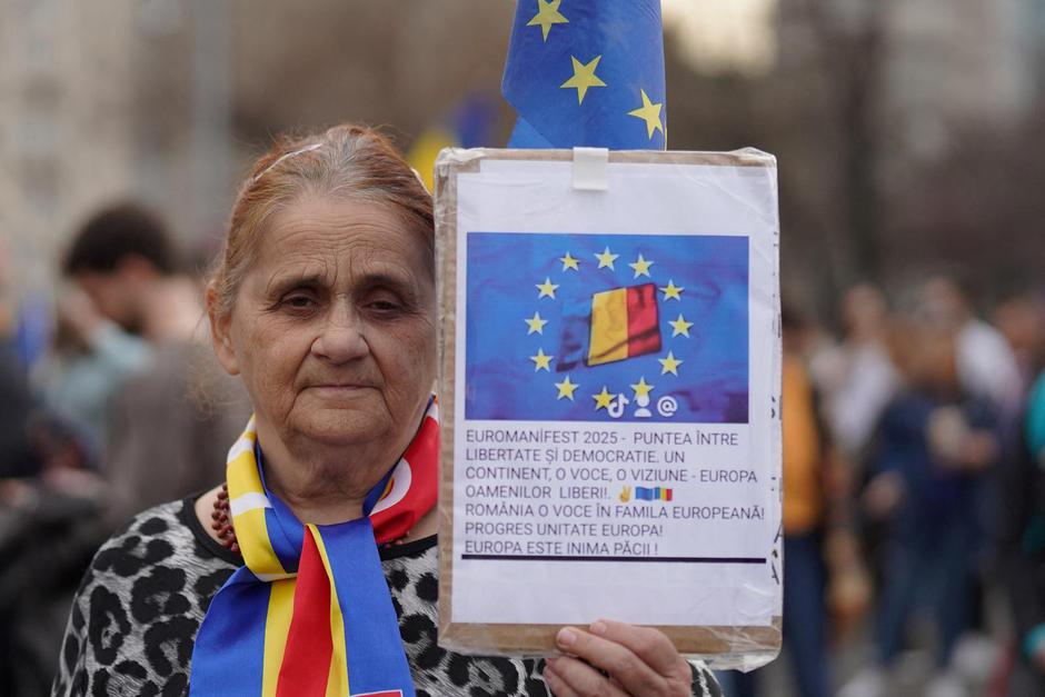 Tisuće Rumunja izašle su u subotu na ulice Bukurešta kako bi iskazali potporu Europskoj uniji u jeku političkih sporova oko ponovljenih predsjedničkih izbora zakazanih za svibanj. Rumunjska bi trebala ponoviti predsjedničke izbore u dva kruga 4. i 18. svibnja nakon što je Ustavni sud poništio prvo glasovanje u prosincu nakon optužbi za rusko uplitanje u korist Calina Georgescua, koji je vodio u anketama.