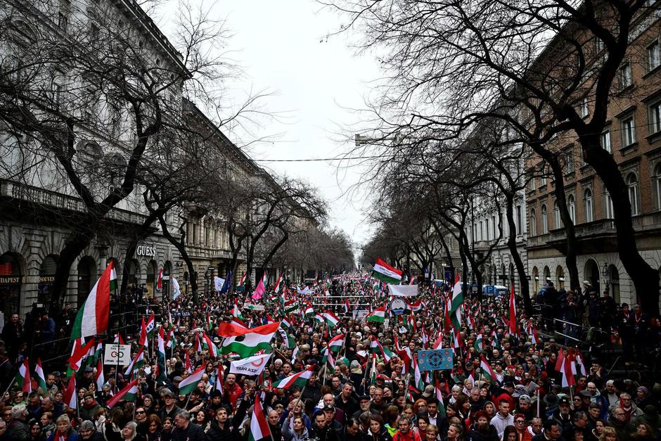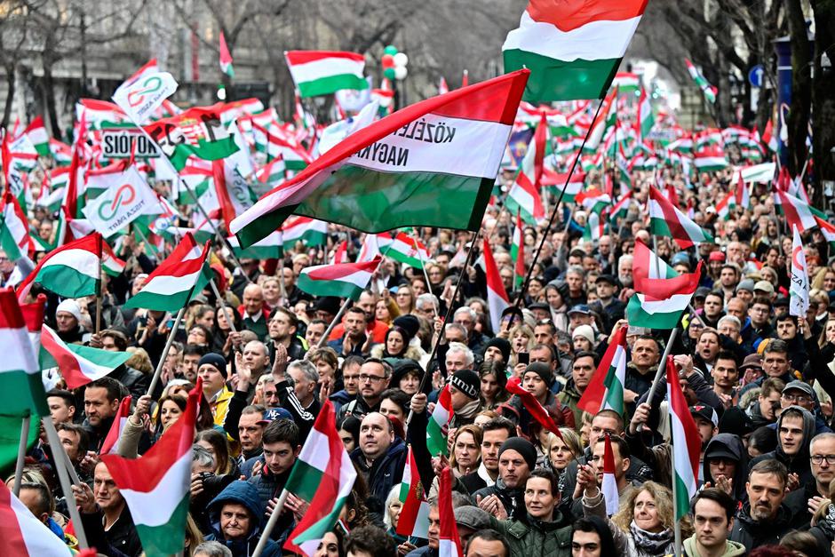 Mašući zastavama, deseci tisuća ljudi okupili su se u subotu u Budimpešti kako bi prosvjedovali protiv mađarskog premijera Viktora Orbana, dok je čelnik rastuće oporbene stranke Tisza obećao učiniti Mađarsku dijelom snažne Europe te okončati 15-godišnju Orbanovu vladavinu.