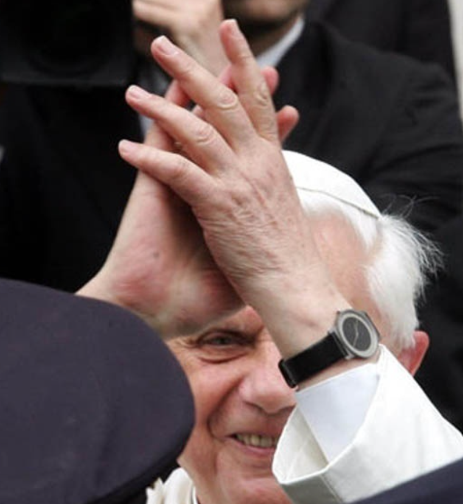Nasljednik pape Ivana Pavla II., Ratzinger nosio je Erhard Junghans Tempus Automatic . Luksuzni sat vrhunske klase njemačke marke Junghans. Govorimo o dragocjenom dodatku. Kupnja jednog košta preko 10.000 dolara . Bijeli brojčanik, rimski brojevi i kožni remen, poklonio mu ga je njemački političar, kako se prisjeća Beyondwatches. Čini se, međutim, da je papa emeritus radije doveo drugoga. To je i dalje Junghans, ali kvarcni, izrađen od titana i sa solarnim panelom na brojčaniku.