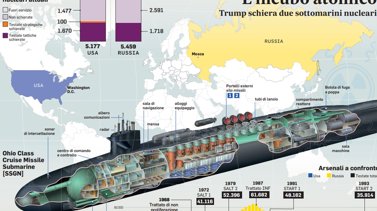 Prijetnja je stvarna. Trump premješta nuklearne podmornice. Putin je odavno zakonom promijenio rusku nuklearnu strategiju, proširivši potencijalni nuklearni odgovor: ne samo protiv pojedinačnih država, čak i onih koje nemaju nuklearno oružje (Ukrajina) koje izravno prijete Rusiji, već i protiv nuklearnih sila (poput Velike Britanije i Francuske) koje bi ih mogle podržati. A sada i američke podmornice. "Od verbalnih prepirki prešli smo na pokazivanje mišića i provociranje, to je bit", zaključuje Tricarico. "Samo po sebi, premještanje podmornica bilo bi nebitno; sada možete udariti pritiskom na gumb od kuće bez potrebe za podmornicama ili bilo čime drugim. Ostatak je koreografija." Dvije podmornice "ne predstavljaju novu prijetnju", rekao je za Tass Leonid Ivlev, bivši general ruskog ratnog zrakoplovstva i sadašnji zastupnik Državne dume. "Potpuno smo svjesni američkih manevara." Političari i stručnjaci bliski Kremlju umanjuju situaciju. Drugi zastupnik, Viktor Vodolatsky, odbacuje "pokušaj zastrašivanja. Rusi„Da su podmornice bile stacionirane u blizini Cipra“, rekao je ruski stručnjak Jurij Fjodorov za The Breakfast Show, „mogle bi stići do središnje Rusije za samo deset minuta.“ Detaljniju analizu donosi Lewis Page u Telegraphu.