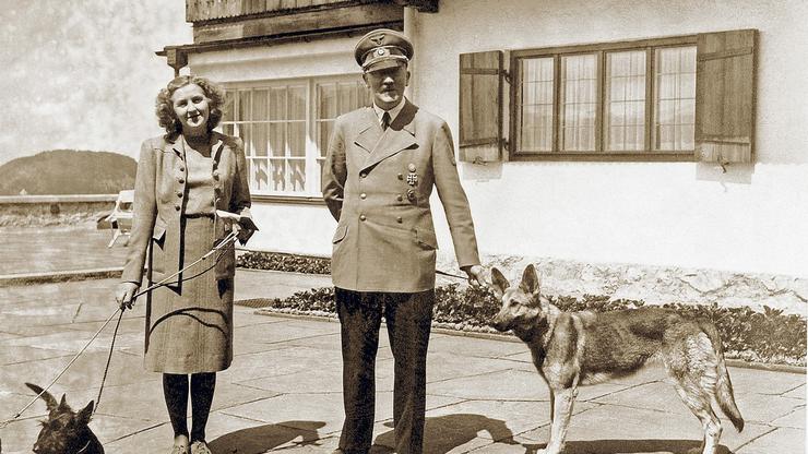 Tijelo dugogodišnje družice nacističkog vođe, Eve Braun, je pokraj njega. Sobu je napunio jak miris gorkog badema, znak da je uzela smrtonosnu dozu cijanida. Dan prije samoubojstva, par se vjenčao na skromnoj i sekularnoj ceremoniji.
