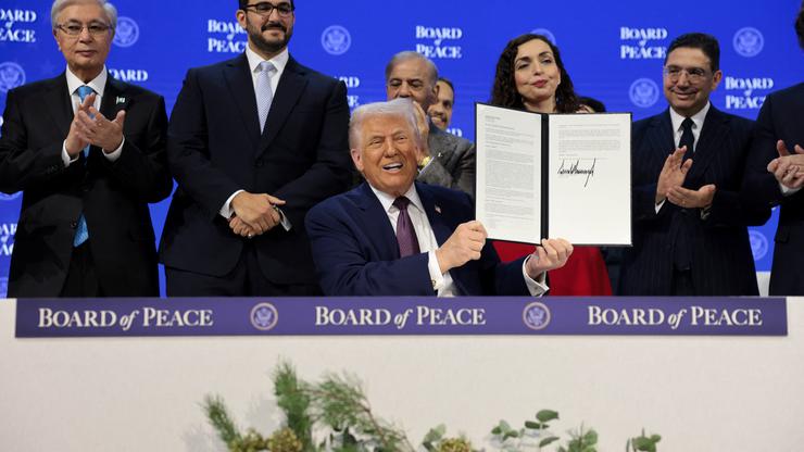 Švicarske Alpe trebale su biti kulisa za Trumpov diplomatski trijumf, no umjesto toga postale su pozornica za transatlantski raskol. Ceremoniji potpisivanja povelje u Davosu odazvalo se manje od dvadeset zemalja, uglavnom s Bliskog istoka, iz Azije i Južne Amerike. Odsutnost zapadnoeuropskih lidera bila je upadljiva, a jedina članica Europske unije koja je poslala predstavnika bila je Mađarska Viktora Orbána. Trump je okupljene, od Azerbajdžana do Paragvaja, nazvao "najmoćnijim ljudima na svijetu", no izostanak tradicionalnih partnera govorio je više od bilo kakvih riječi.